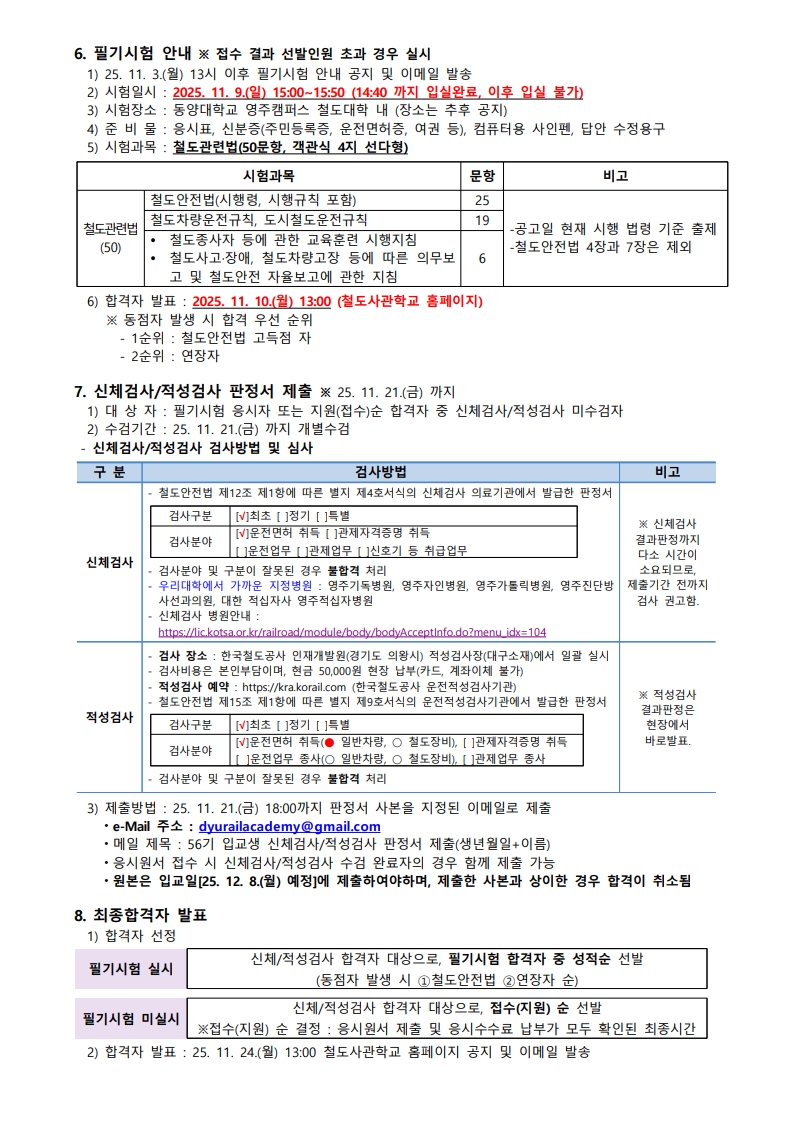 가. 기존 안내 입교시험일정 : 25. 11. 8.(토) 15:00